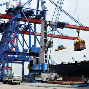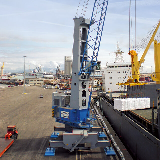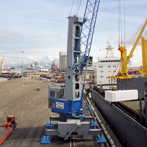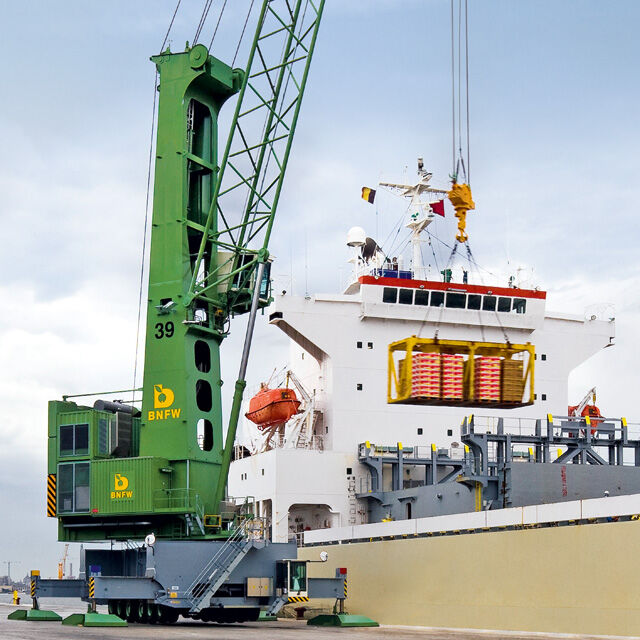 So vielseitig wie möglich, nicht größer als nötig – unter diesem Motto steht die gesamte Mittlere Kranfamilie von Konecranes. Folglich ist der Konecranes Gottwald Modell 4 Hafenmobilkran extrem kompakt und dabei sehr funktional konzipiert. Erhältlich in zahlreichen Varianten handelt es sich um einen 100-t-Kran, der über einen Arbeitsradius bis zu 46 m und Hubgeschwindigkeiten von maximal 120 m/min verfügt. Hinzu addieren sich 40- oder 34-Tonnen-Greiferkurven in gewohnt hoher A7- bzw. A8-Klassifikation. Der Kran wird an Schiffen bis zur Panamax-Klasse eingesetzt.