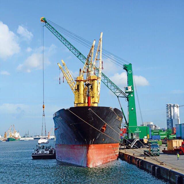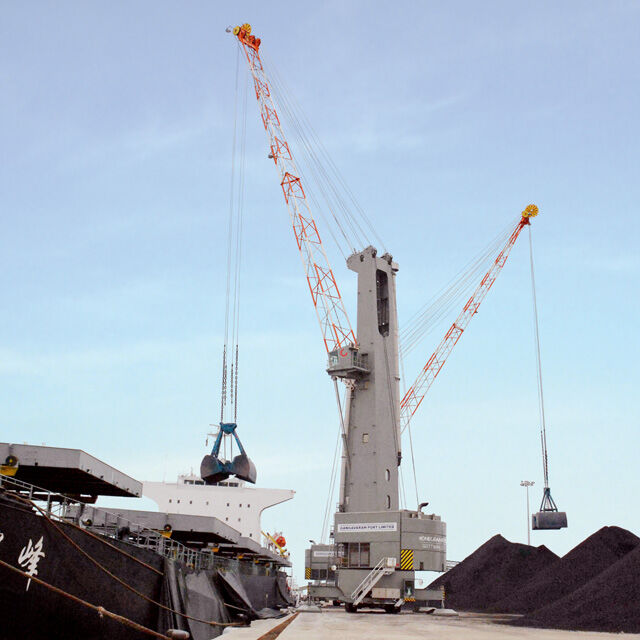 Der Konecranes Gottwald Modell 6 Hafenmobilkran ist das Einstiegsmodell in unsere Große Kranfamilie. Der für Hochleistungsanwendungen konstruierte Kran verfügt über Traglasten bis zu 125 t, einen Arbeitsradius von maximal 51 m und hohe Hubgeschwindigkeiten bis zu 140 m/min. Den Konecranes Gottwald Modell 6 Hafenmobilkran gibt es in zahlreichen Varianten einschließlich Vierseil-Greifer-Ausführungen mit starken 50-t- und 40-t-Greiferkurven – in A7- bzw. in A8 Klassifikation. Der Kran wird an Schiffen bis zur Post-Panamax- bzw. Capesize-Bulker-Klasse eingesetzt.