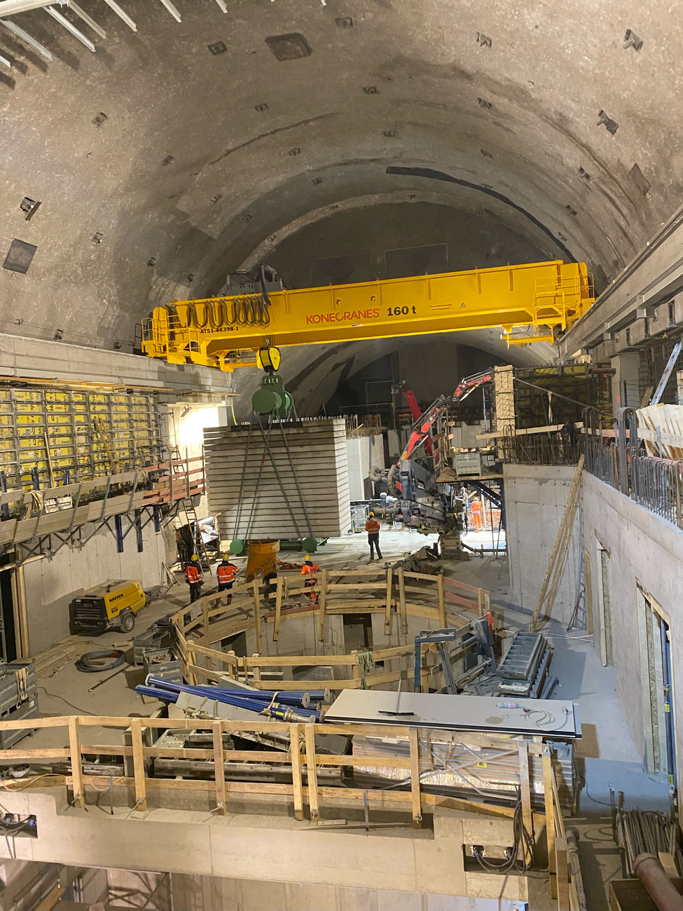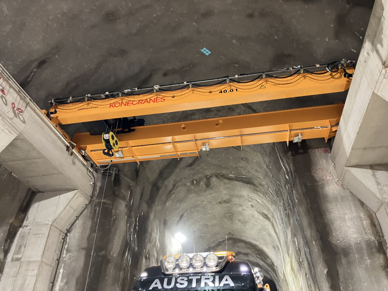 Weiters lieferte Konecranes bereits während der Kavernenausbruchsarbeiten einen zweiten, in einer darunter liegenden Kranebene befindlichen 12,5t CXTD Bauhilfskran. Dieser Kran wurde für eine sichere Materialhandhabung in der Bauphase eingesetzt. Zukünftig wird er für die Beförderung von niedrigeren Lasten eingesetzt.