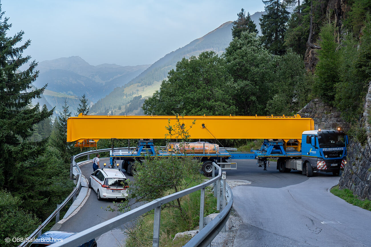 Ganze drei Tage dauerte die Anlieferung und Einbringung des Maschinenhauskrans. Der Maschinenhauskran wurde in mehreren Teilen per Tieflader nach Uttendorf angeliefert – von dort ging es dann mit einem Selbstfahrer mit lenkbaren Achsen die kurvenreiche Straße rauf und in den Berg. Eine komplexe Angelegenheit, die viel Planung im Vorfeld erforderte. Kompliziert war aber nicht nur die Anreise, auch die Montage tief im Berg barg viele Herausforderungen. Der neue Maschinenhauskran wurde mit einem Telekran zuerst in drei Teilen auf die Kranbahn gehoben und dort verbunden – viel Platz für Mensch und Maschine ist in der unterirdischen Kaverne nicht, noch weniger für so große Anlagen.