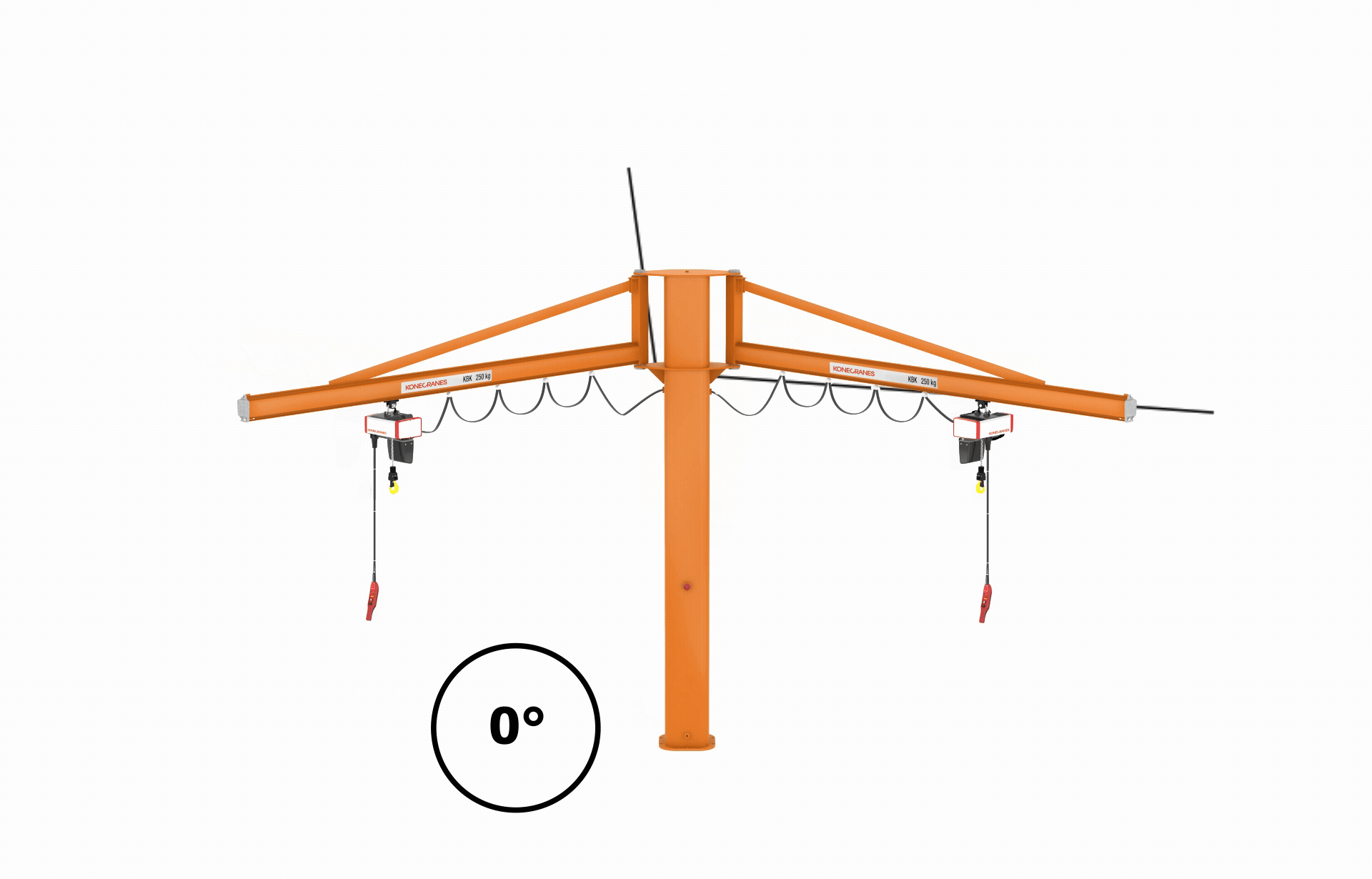 Schwenkkrane mit zwei Auslegern können so viel mehr und benötigen nur den gleichen Platzbedarf wie mit einem Ausleger. Für die perfekte Gestaltung von aneinandergrenzenden Arbeitsplätzen können die zwei Ausleger gegenüberliegend angeordnet werden und Arbeitsabläufe können so noch optimaler abgestimmt werden. Tragfähigkeit pro Ausleger bis zu 1.000 kg.