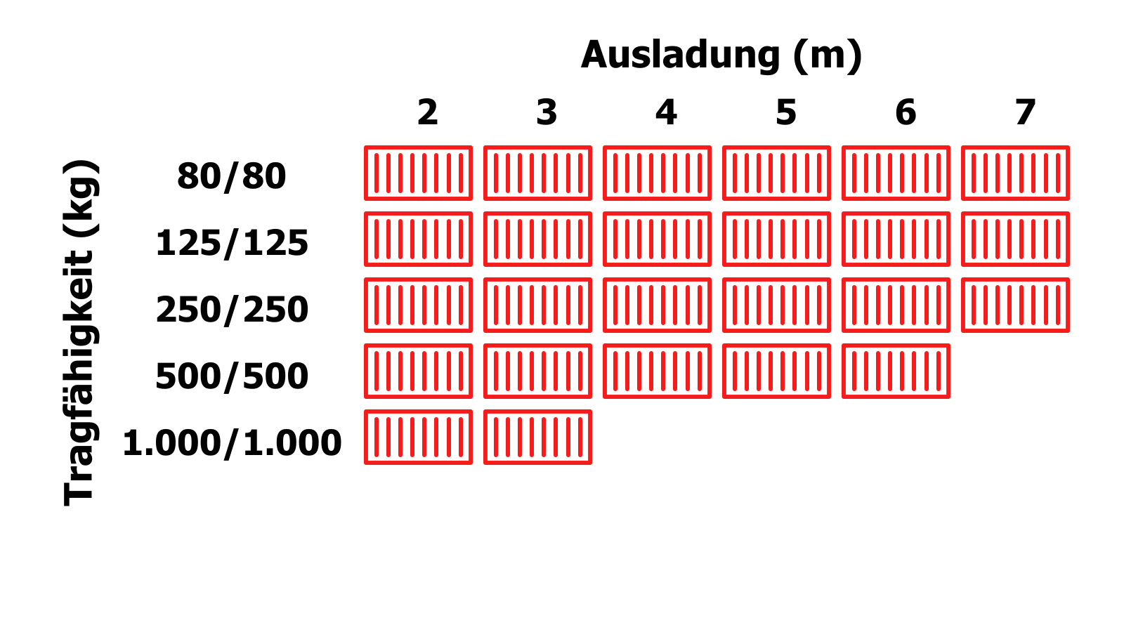 Große Ausladungen können durch die abgespannte Bauweise des Auslegers realisiert werden, trotz geringem Eigengewicht. Das Bedienen von Hand in allen Ausladungsvarianten ist leicht und ergonomisch. Heben, Bewegen, Senken und Positionieren Sie Werkstücke bis zu 2.000 kg einfach und exakt.