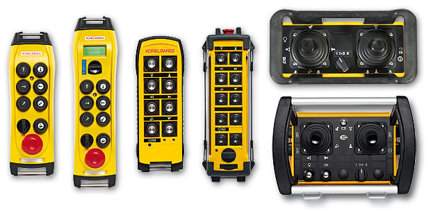 Konecranes bietet zwei Funkfernsteuerungselemente für Krane an: RemoX und RemoC. RemoC verfügt über Drucktaster, RemoX ist sowohl mit Drucktastern als auch mit Joystick-Steuerhebeln und zahlreichen Zusatzoptionen erhältlich.