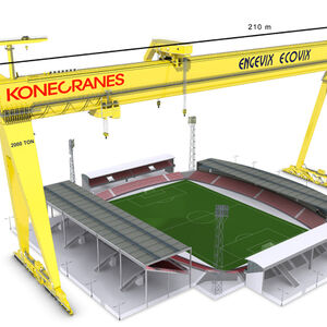Er soll im Trockendock von Rio Grande so Sul in Brasilien ganze Schiffe beziehungsweise Teile davon transportieren. Derzeit arbeiten die Ingenieure und Techniker von Konecranes intensiv daran, den größten Goliath-Kran der Welt zu bauen. Die Maße des Goliath-Krans sind gigantisch: Er hat eine Spannweite von 210 Metern und kann mit seiner Tragfähigkeit bis zu 2.000 Tonnen bewegen und auf eine Hubhöhe von 83 Metern heben. Mit dem neuen Kran soll die Produktionszeit im Trockendock verkürzt und die Produktivität der Werft erhöht werden. Auftraggeber ist die brasilianische Werft Ecovix-Engevix Construções Oceânicas S.A mit Hauptsitz in Rio de Janeiro. Konecranes, einer der weltweiten Marktführer für Kran- und Hebetechnik, liefert den Kran im Juli 2012 nach Brasilien.