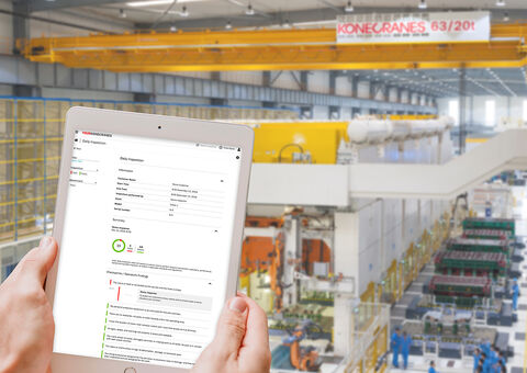 • Many companies are still using paper to record daily inspection results. But paper can get dirty and greasy making it hard to read, or easily lost which can be a big problem for compliance audits. So we developed CheckApp for Daily Inspections—an easy-to-use app for crane users to quickly and easily record their findings when performing daily inspections. The data is available on the Konecranes Portal at any time so you can make sure daily inspections are being performed and easily identify issues that need attention.