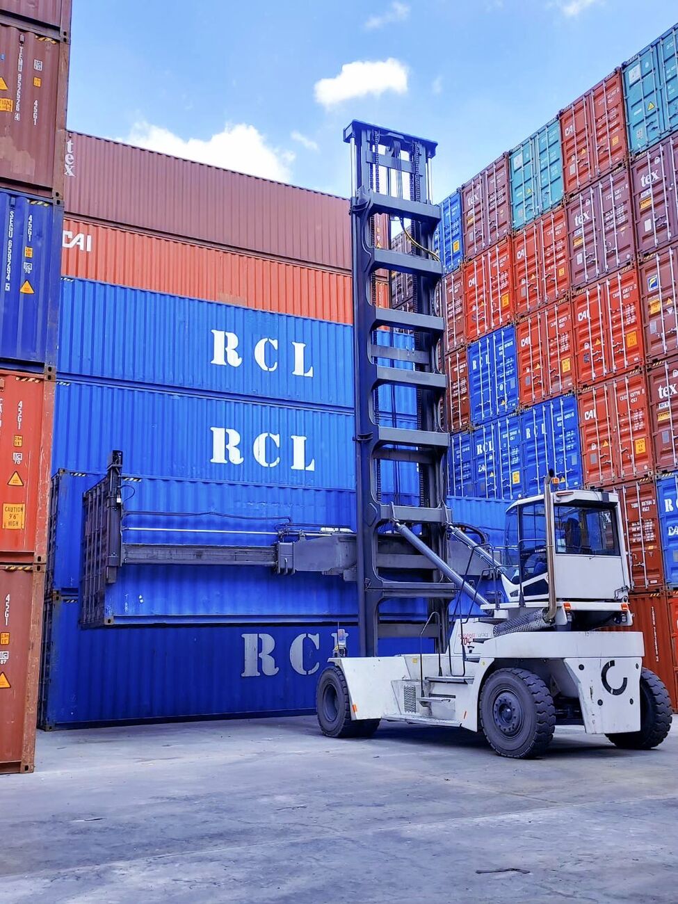 The 127 yard in Bangkok currently operates one Konecranes SMV 6/7 ECB90 empty container handler, delivered in 2010, and two of the latest Konecranes Liftace E 7/8 ECC9 empty container handlers, delivered in 2020. The 99CD yard also operates two of the same Liftace machines. With a lifting capacity of 9 tons, the SMV can stack up to 6 empty high-cube containers or 7 standard containers. The Liftace trucks can lift up to 9 tons as well, with a slightly higher stacking ability up to 7 empty high-cubes or 8 standard containers. Designed for the demanding conditions of a modern port, all five lift trucks have a sturdy wheelbase of 4,500 mm and a single box spreader with twistlocks to keep them stable when lifting high.