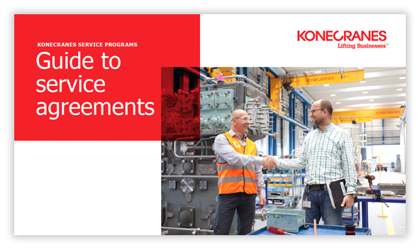 This guide covers all the things you need to know about having a crane Service program with Konecranes. It takes you through the consultation process and how we share our findings, provide recommendations and discuss how these actions impact your operations and the entire health of your business.