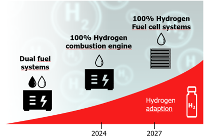 The first is to use hydrogen as a direct fuel, typically in combination with a diesel-combustion engine. This solution can help to reduce location emissions and thus – in a given context – may be more sustainable than existing alternatives.