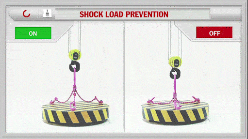 Shock Load Protection is designed for smooth load pickups and to prevent shocks to the load and the crane. It is a feature of Konecranes Variable Frequency Drives for hoist control. If load is picked up too fast, the hoisting speed is automatically reduced until the load is in the air. This protects the crane, the load and the structure to which the crane is attached from extra stress. With this automated feature, the operator can focus on controlling the load, monitoring his or her environment and ensuring that the load remains secure.