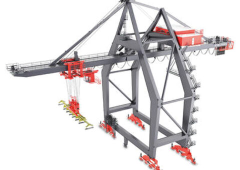 These cranes are used in the export harbors of steel mills to load steel plates, billets and coils onto ocean-going vessels. Our plate loading cranes are high-performance cranes that can be equipped with a variety of lifting devices.