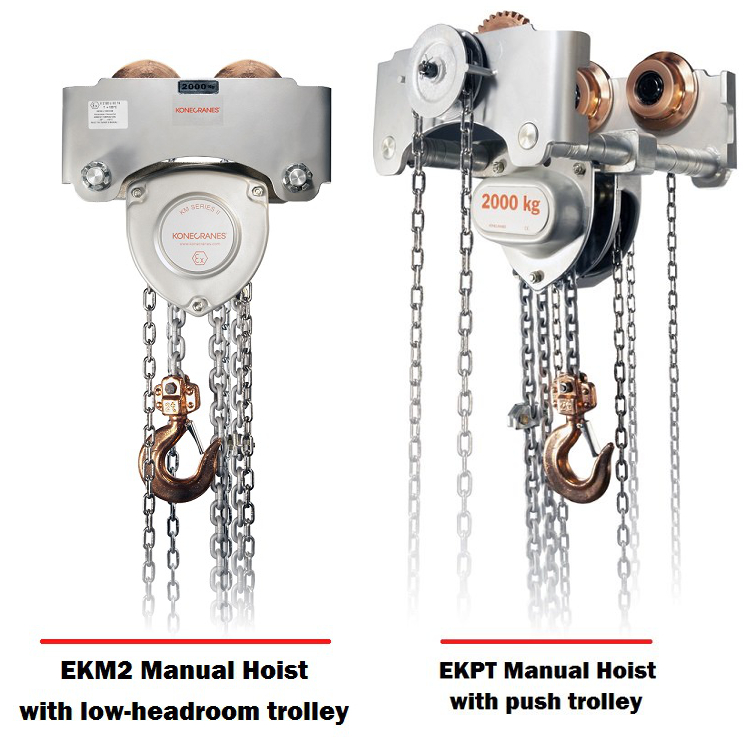 Konecranes EKM2 manual chain hoist and EKPT manual trolley offer the following benefits: