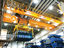 Semi-automated die gripper cranes used in stamping plants are changing the landscape of automotive manufacturing. Modern dies with lifting pins at all four corners can be picked up from the die warehouse with a die gripper attachment and loaded onto bolsters on each side of the press. While ordinary cranes need an operator plus a two-man rigging crew to pick up a die, Konecranes die gripper crane allows the operator to do the job alone in semi-automation mode, using cameras mounted on the trolley or the gripper that live-stream a view of the operation to the display on the radio controller.
