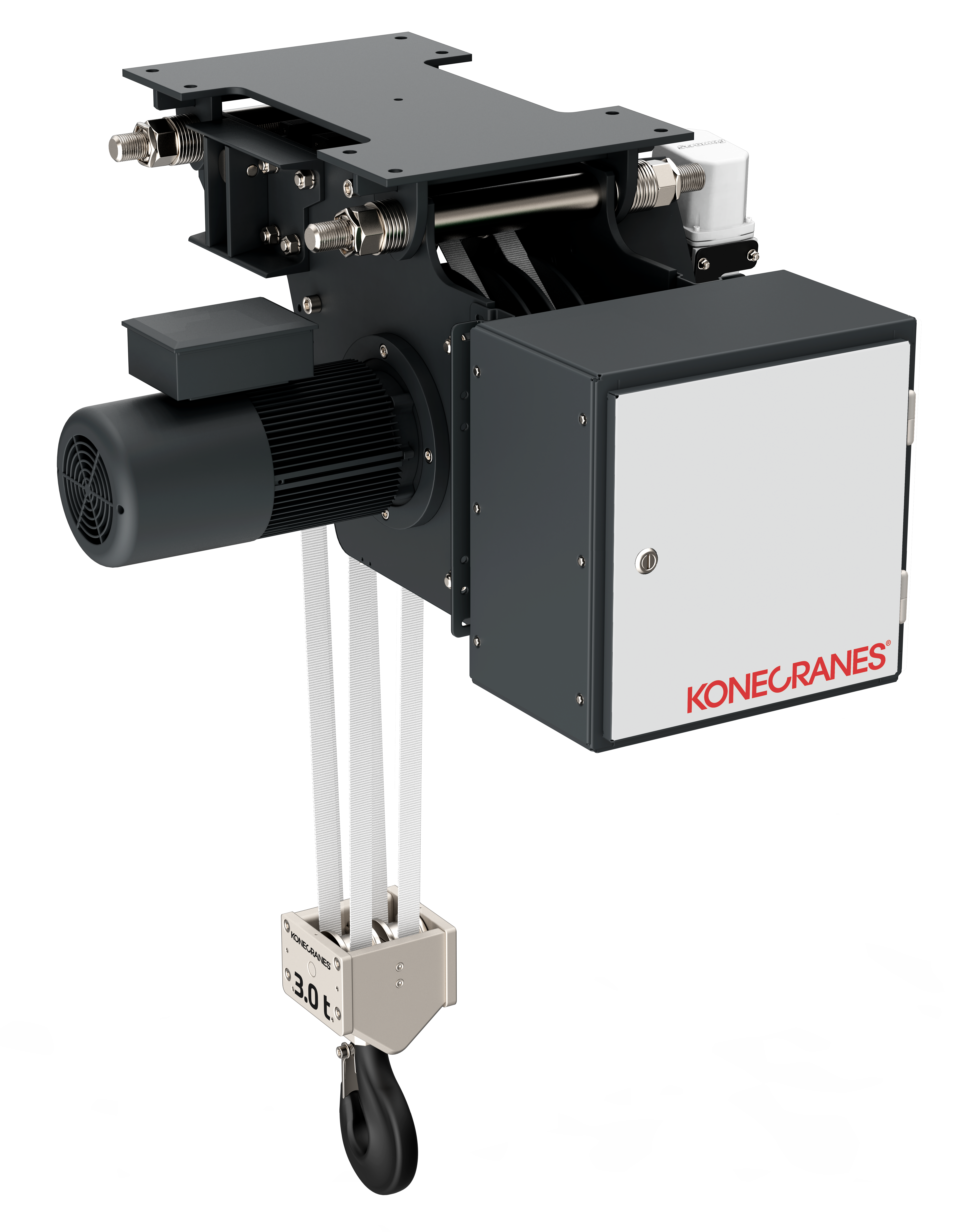 The Konecranes belt hoist is an ideal choice for industries like electronics, pharmaceuticals, and food, or anywhere cleanliness is essential. Its lubricant-free belt ensures reliable, and precise lifting in clean environments. With high-strength polyamide pulleys and a belt resistant to acids, bases, solvents, and oil, it offers durability in harsh environments. Featuring IP55 shielding, an electrically isolated hook block, and a self-adjusting brake, the hoist ensures maximum safety. Easily installed on various lifting systems such as overhead cranes, Konecranes KBK workstation lifting systems, jib cranes, and monorails, it supports loads up to 5 tons.