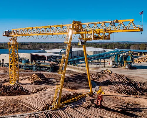 A Konecranes woodyard crane easily handles the unloading, storing and feeding of logs in a pulp mill. Designed to operate in all weather conditions, even high winds, these cranes minimize wood losses while minimizing energy, maintenance and labor costs. With three flexible, high-performance designs – the straight track portal, rotating portal and log boom – we can offer an ideal solution for every woodyard.