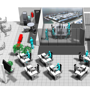 The Remote Operating Station (ROS) is a comfortable workstation for the human remote operators who remotely carry out the truck loading and unloading operations in the automated container stacks. Truck loading and unloading must be carried out by human operators for safety reasons. In a container terminal, a number of ROSs are working in a remote control room which is a comfortable office environment for personnel.