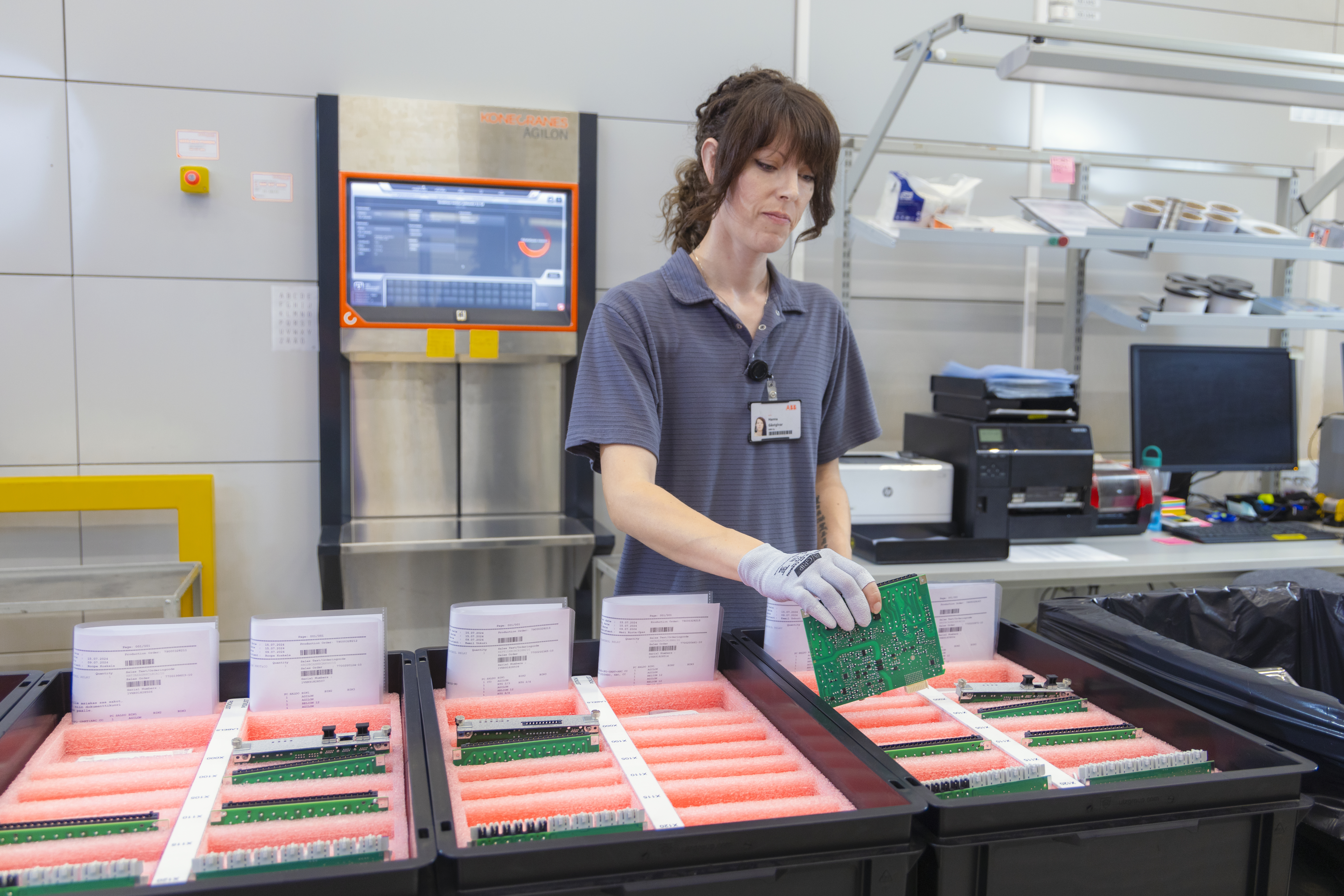 ABB Distribution Solutions’ Agilon picking workstation with an ergonomic pick-to-light table ensures efficient, accurate assembly.