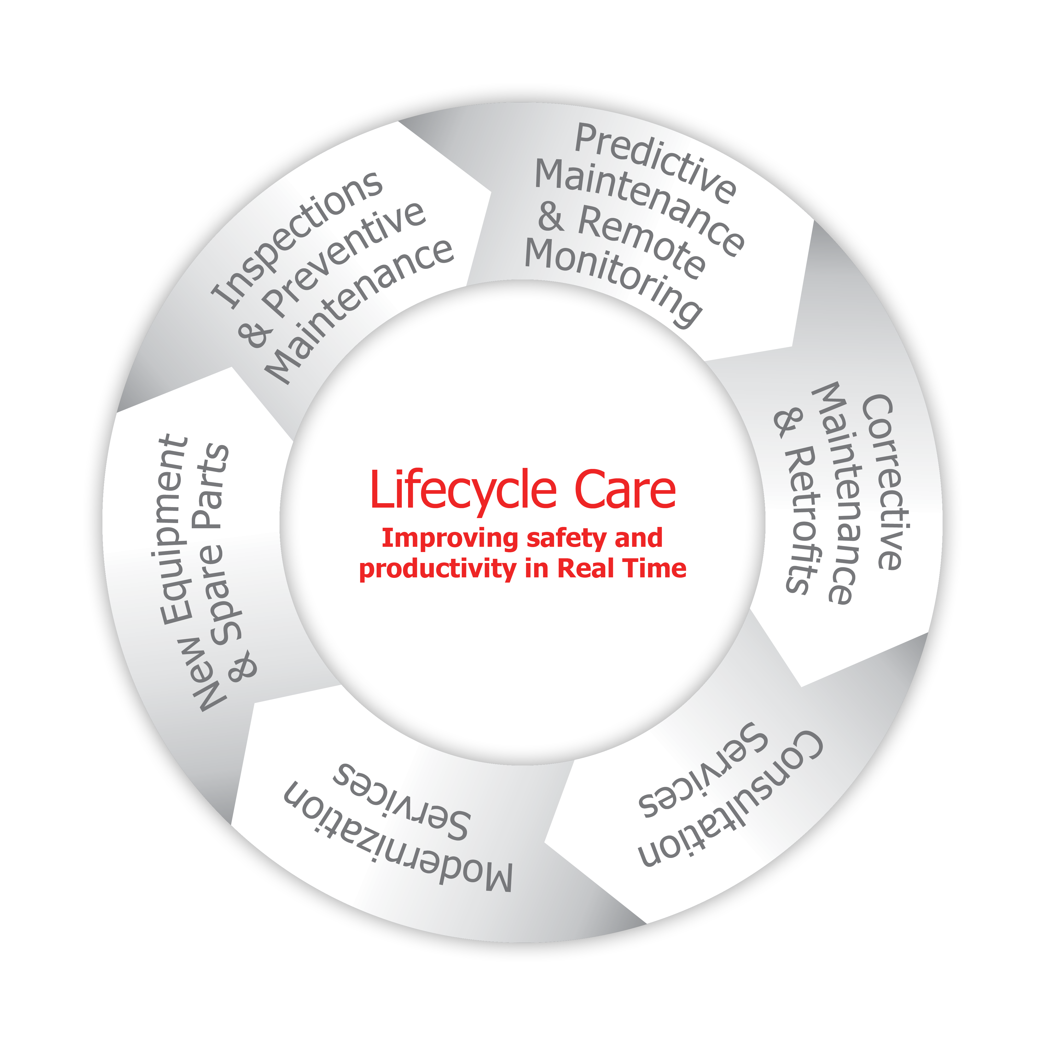El cuidado del ciclo de vida útil es nuestro método integral y sistemático de mantenimiento, el cual se respalda con herramientas y procesos de primera clase. Para ofrecer el cuidado del ciclo de vida útil en tiempo real empleamos internet industrial, datos de conexión, máquinas y personas. Juntamos datos de uso y mantenimiento, y los combinamos con nuestros conocimientos y experiencias, a fin de proporcionar nuestro punto de vista que permite que nuestros clientes optimicen sus operaciones y actividades de mantenimiento.