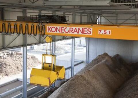 Nombreuses sont aujourd'hui les usines énergétiques de biomasse qui ont remplacé les chargeuses frontales ou convoyeurs au profit de grues pour transférer le matériel de la réception à l'entreposage.