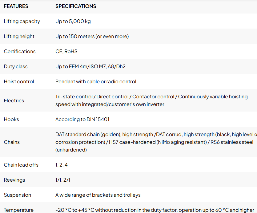 Konecranes CLX dan SLX chain hoist menawarkan berbagai fitur dan opsi:
