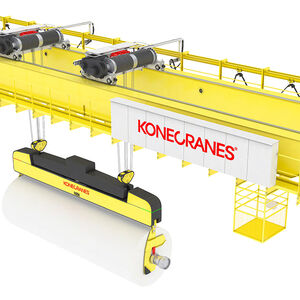 A Konecranes parent roll handling crane is dimensioned for handling all process machine output in a standard paper mill. It is designed for accurate movements, needed when lifting heavy rolls around high-speed machines. Made for safety and durability, its electrics are protected from the potentially corrosive, warm and wet environment in which it operates. Larger roll cranes can have multiple purposes across plant processes, including maintenance.