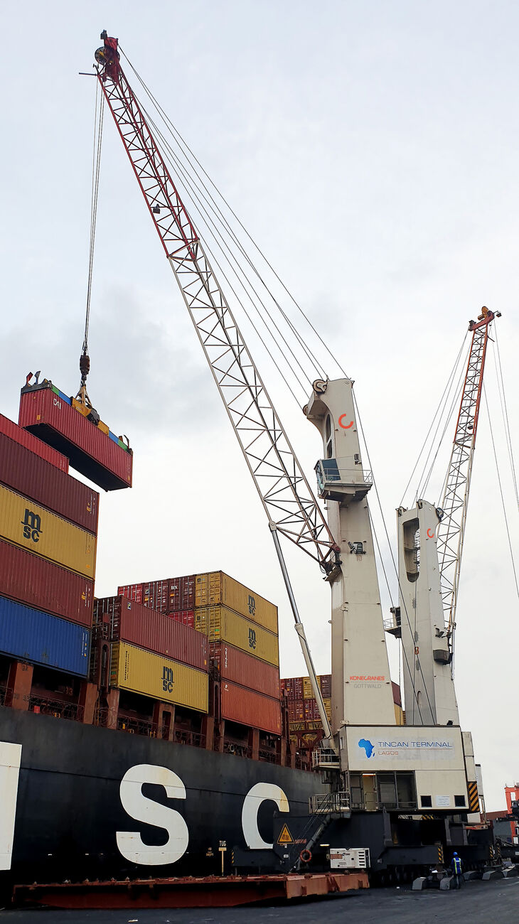 The new cranes will be operated by TICT in the Tincan area of the Port of Lagos, where they will handle containers alongside a fleet comprising of six Model 4, two Model 6 and two other Model 7 Konecranes Gottwald Mobile Harbor Cranes already on-site.