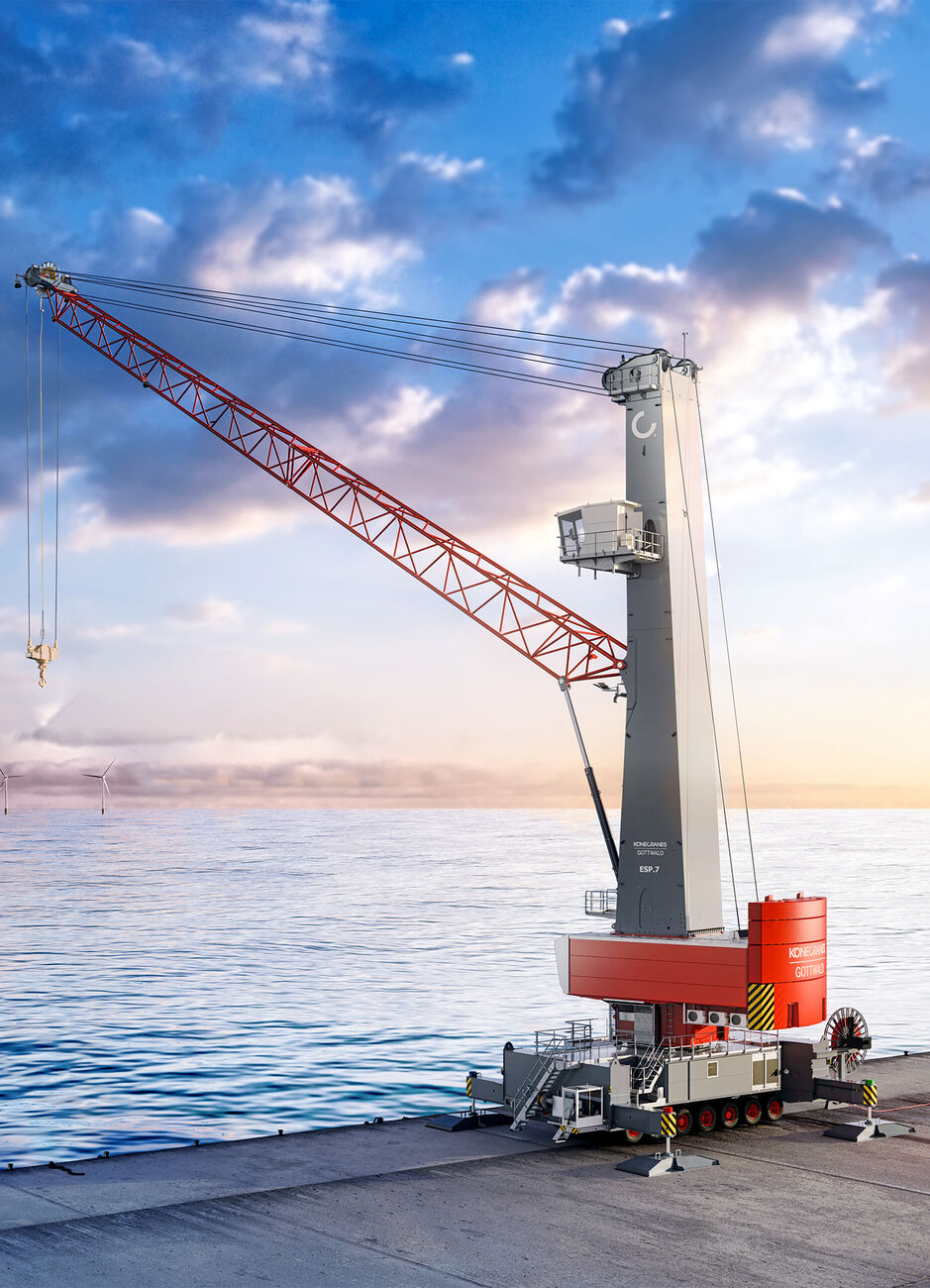 The new crane is a Konecranes Gottwald ESP.6 Mobile Harbor Crane supplied with a working radius of 49 m and a capacity of 125 t. Its long reach, high working speeds and strong lifting capacity curves will add efficiency and precision to the delivery of large offshore wind farm components and high value project cargo – while improving the environmental credibility of the port.