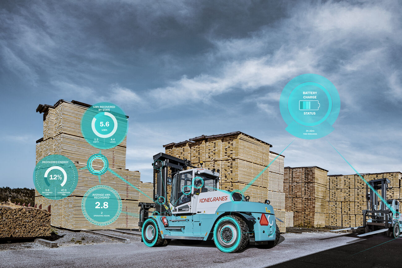 Погрузчик Konecranes E-VER можно подключить к системе удаленного мониторинга TRUCONNECT®. В основе этой платформы лежат технологии интернета вещей, с помощью которых собираются и анализируются такие параметры, как уровень заряда аккумулятора, потребления и рекуперации энергии и др. Визуализированная информация доступна для владельцев техники Konecranes на портале yourKONECRANES.com. При этом обеспечен высокий уровень защиты данных. Располагая такими сведениями, клиент может разработать систему ключевых показателей эффективности, контролировать качество эксплуатации машины, производительность, безопасность и уровень выбросов вредных веществ. Все это позволяет оптимизировать работу парка техники.