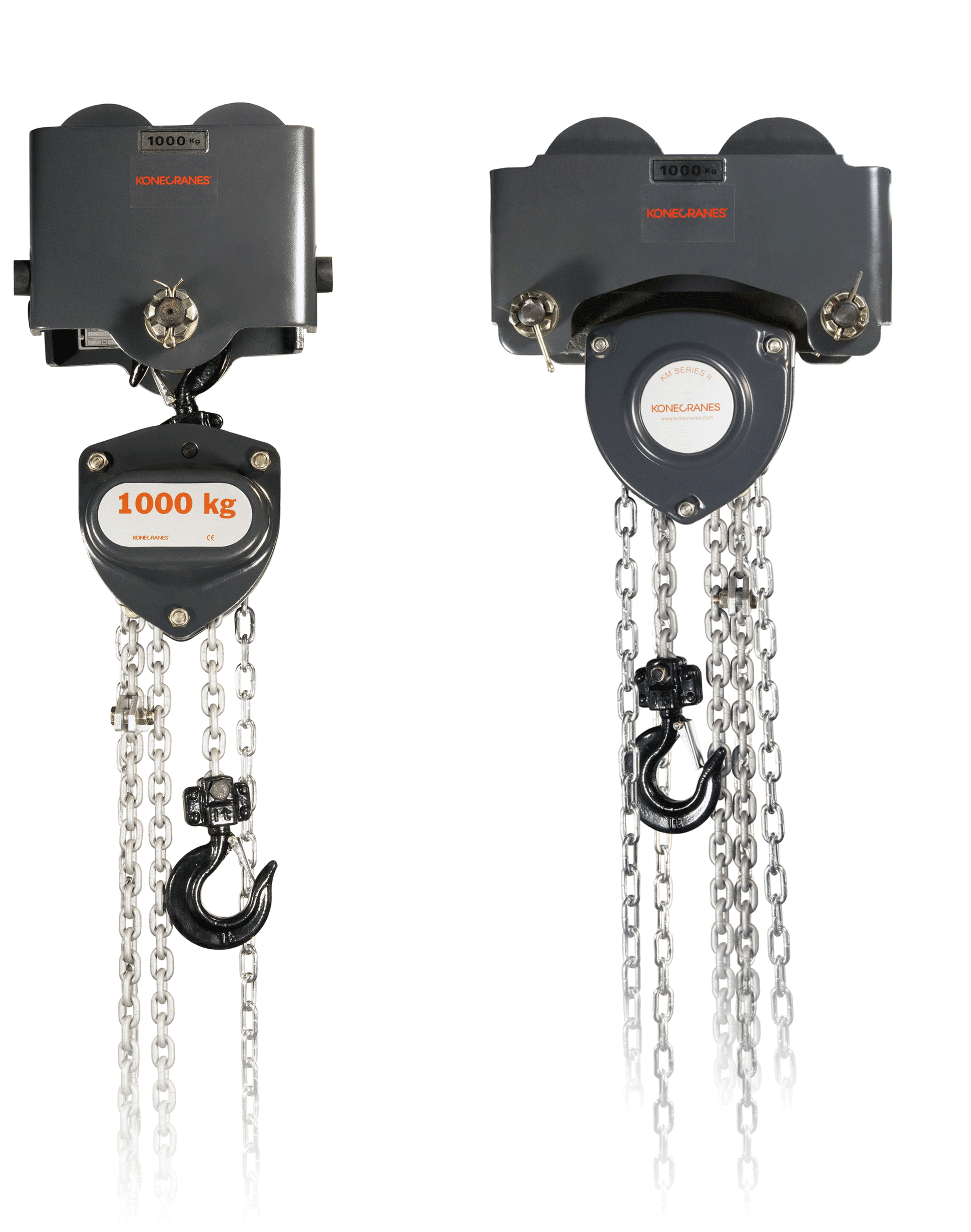 • I-balkvagnar med manuellt tryck (upp till 10 ton) eller handväxlad kätting (upp till 20 ton)